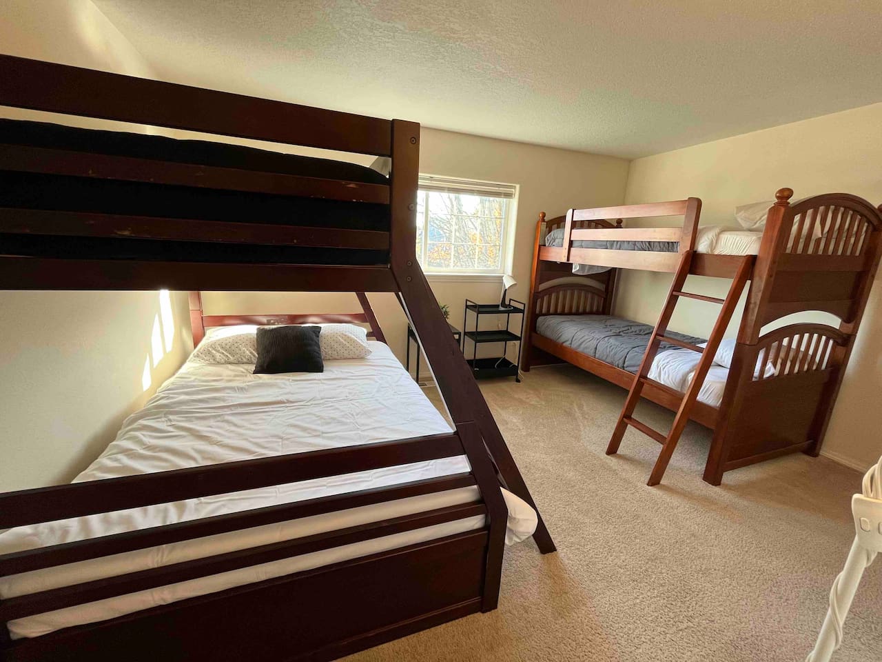 Hello! We have a comfortable home in the Beaverton Portland area built in 1990s. In the home we have a private pool table. Should your group enjoy playing pool. it should provide you great entertainment no matter if you are on vacation, work trip or family reunion. TV has Netflix, Amazon Prime, Hulu, and HBO Max subscriptions! During your stay, you will have access to a basic stocked kitchen including: drip coffee machine, microwave, refrigerator, dishwasher, and pots & pans. There are a total of four bedrooms located in the house. A total of four bedrooms: -Bedroom #1 is the master bedroom, which has a twin over full bunk bed, walk-in closet, and full bathroom. -Bedroom #2 has a queen bed, and bedroom #3 has a double bed, both with a closet and hangers. -Bedroom#4 has one twin over full bunk and one twin over twin bunk bed. -Fenced yard. -Charcoal BBQ grill. Please clean up after each use. -washer/dryer in unit. -Central air conditioning and heating You can park two cars on the drive-way, there's also free street parking available. Garage is not available for guest use.