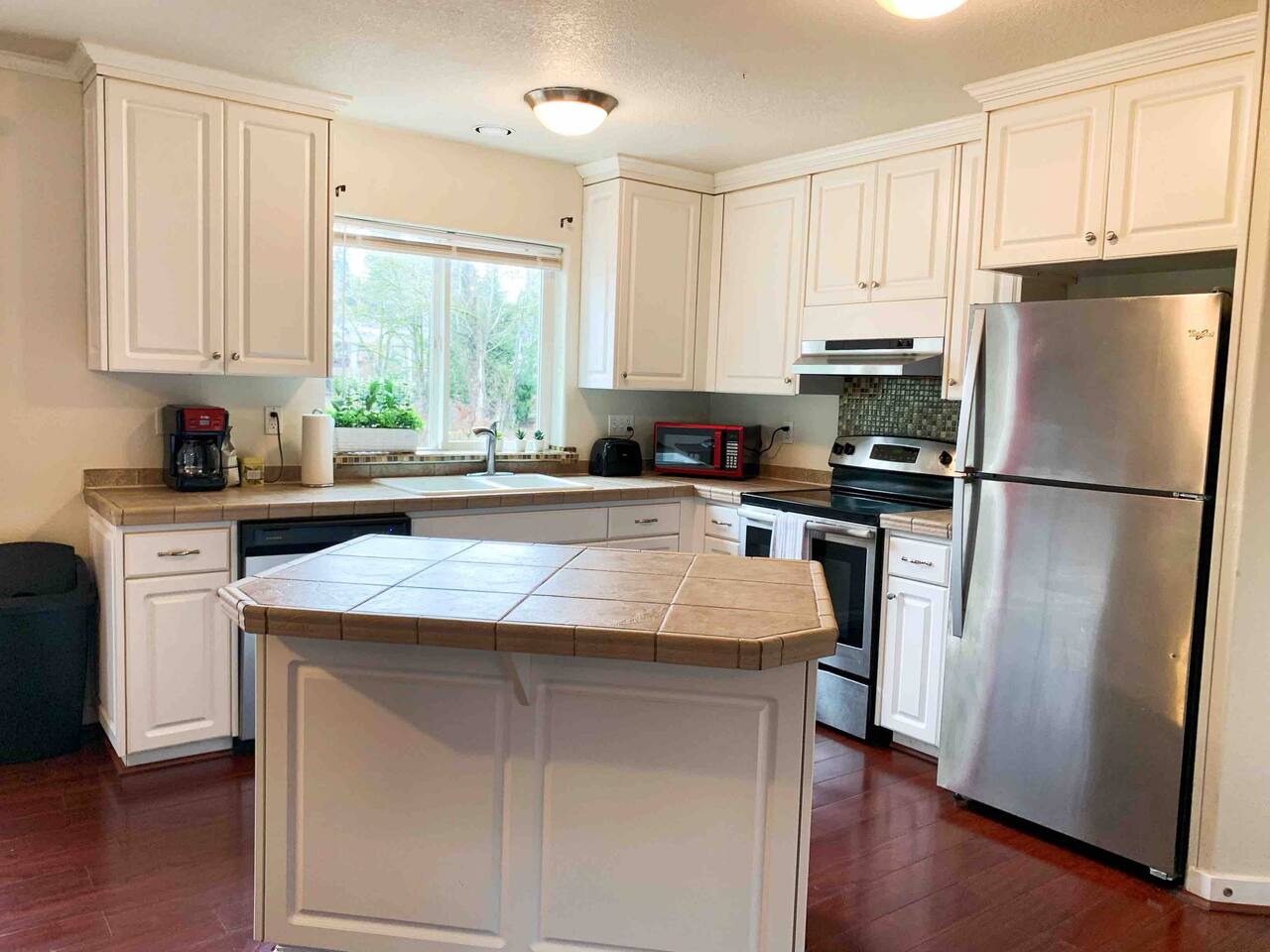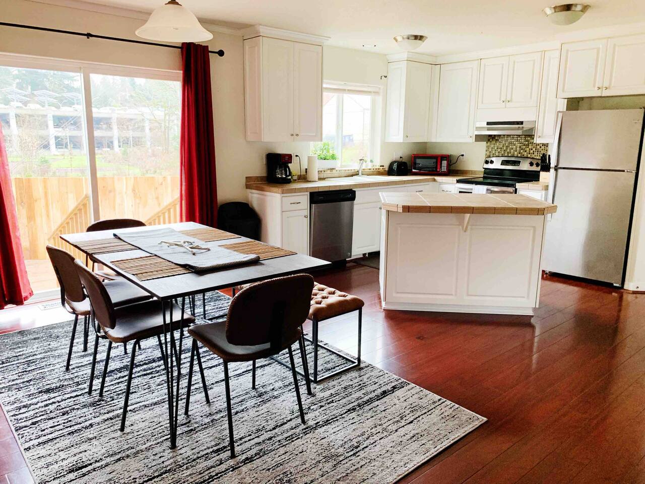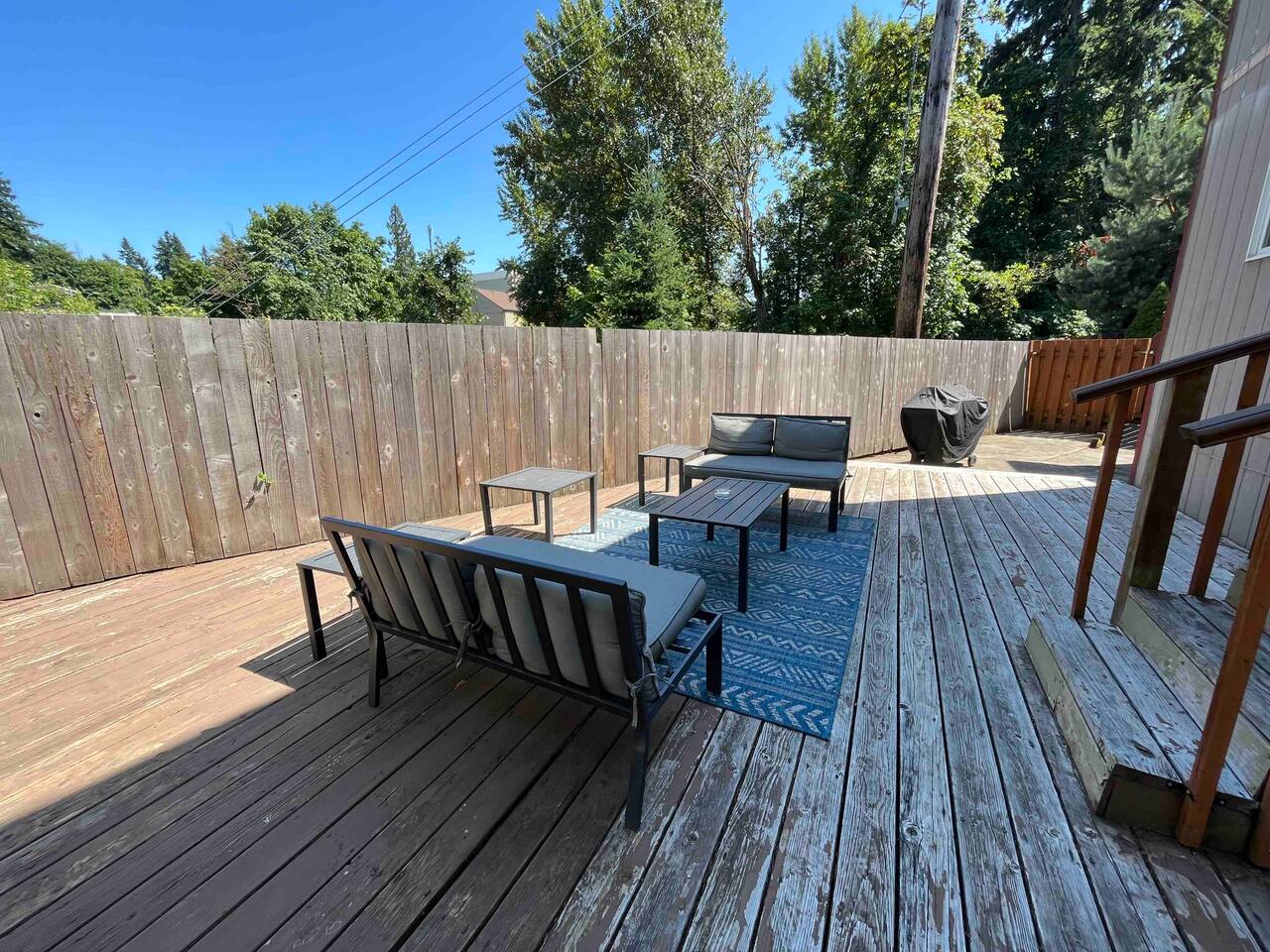 Hello! We have a bright, tasteful decorated modern home in SE Portland area. There are total of four bedrooms located in the house, with 3 queen-sized beds, 1 full size and 1 twin size. There are 2 additional sofa beds that can be comfortably slept in as well. Home is equipped with a 2-car garage, air conditioned and heating, dishwasher, washer/dryer in unit, pack n'play for traveling parents, also a brand new play structure suitable for kids between 3-10 years old. Beautiful front yard with picnic table, and a fully fenced backyard with deck. My favorite thing about this house is that there's a 6-mile walking trail next to the house, you can walk or bike along the trail and it goes all the way to the Willamette River bay front. The house also located right next to the MAX station, makes your transportation really easy. We have Netflix, Amazon Prime, Hulu, and HBO Max subscriptions!